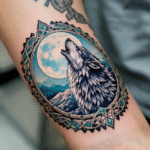 Tetování předměty, obraz, zvíře, keltský vlk a Měsíc na předloktí