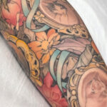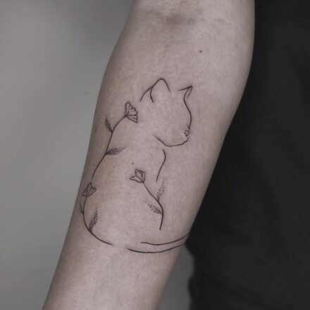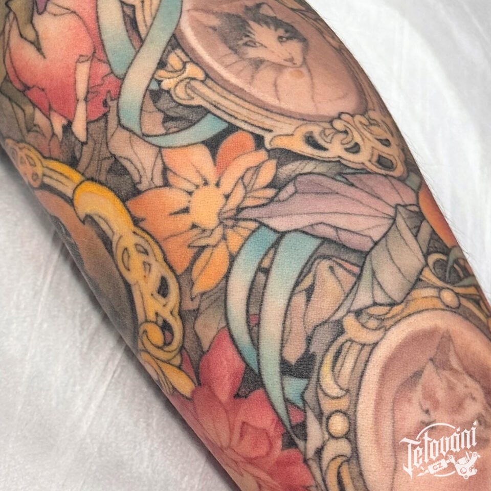 Tetování předměty, obrázky s kočkama, květiny na lýtku