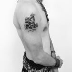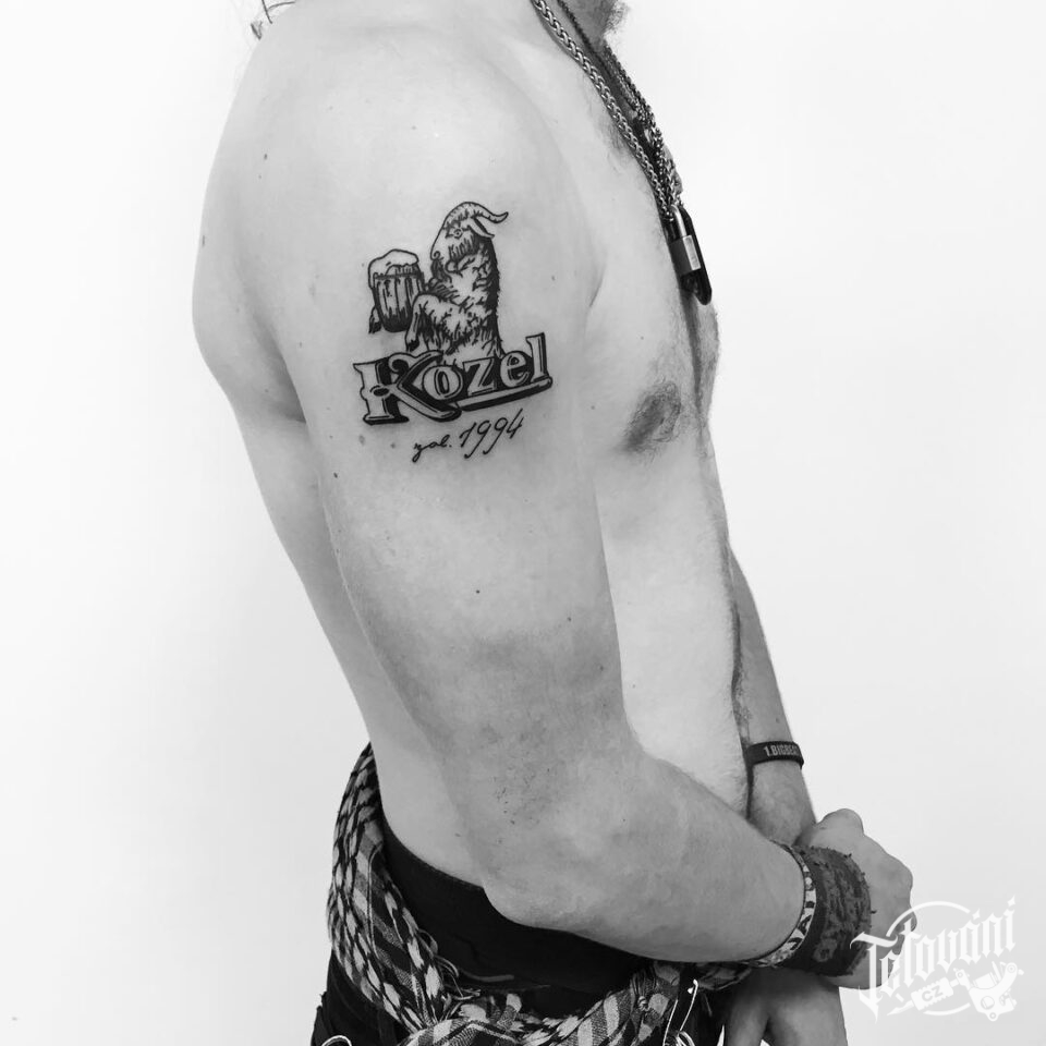 Tetování předměty, pivo, zvíře, kozel s nápisem na rameni