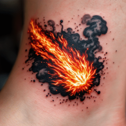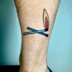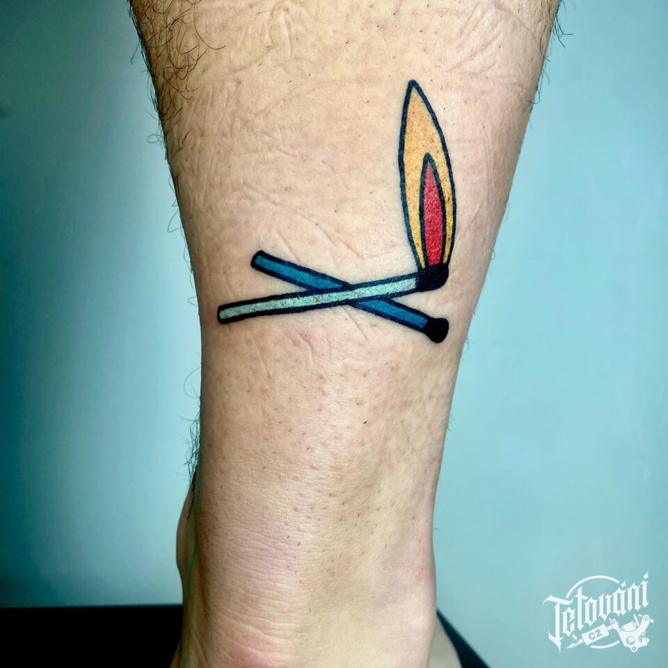 Tetování předměty, sirky, oheň na noze