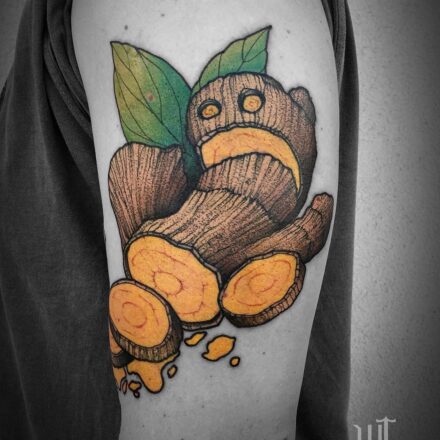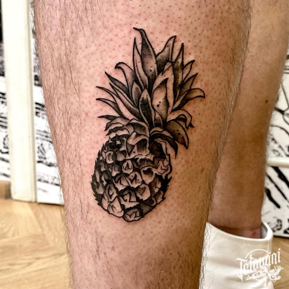 Tetování předměty, symbol zdraví, ananas na lýtku