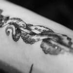 Tetování předměty, trojzubec s chapadlem chobotnice na předloktí