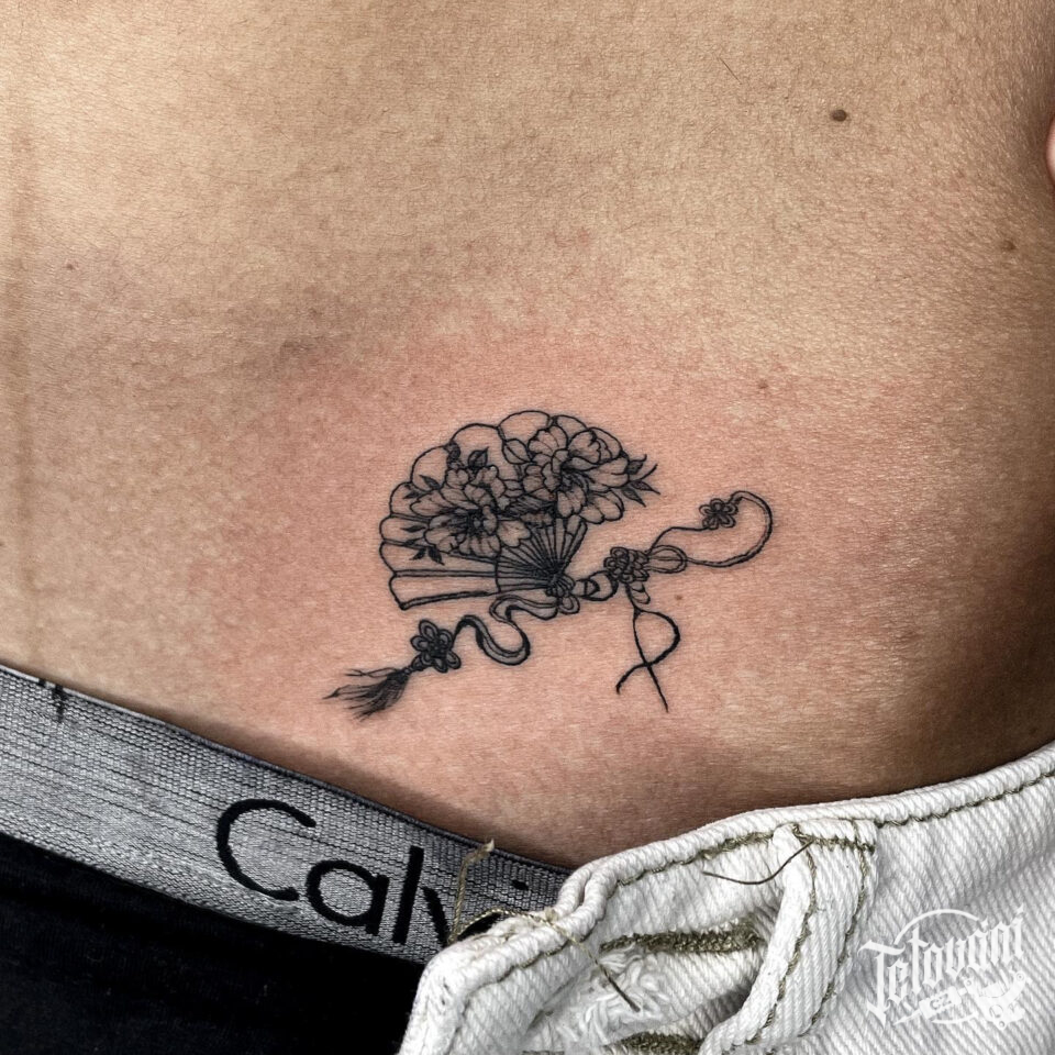 Tetování předměty, vějíř s květinami na břichu