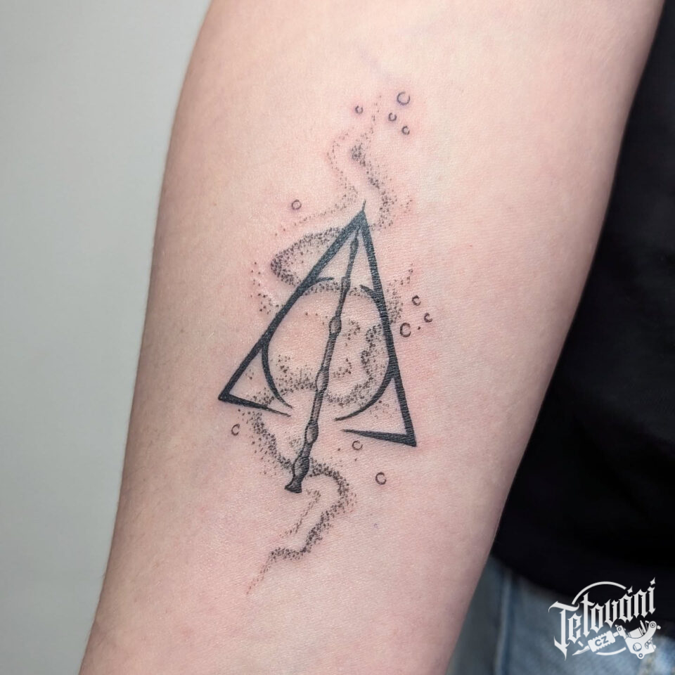 Tetování předměty z filmů a pohádek Harry Potter, relikvie smrti na předloktí