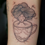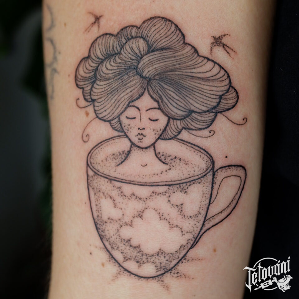 Tetování předměty, žena v hrníčku na ruce