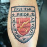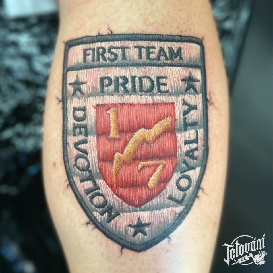Tetování předměty, znaky a symboly, nápisy na lýtku