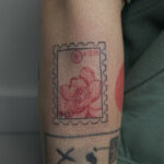 Tetování předměty, známka s květinou na předloktí