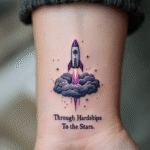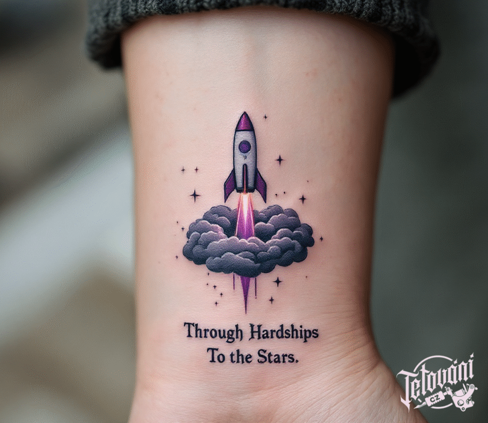 Tetování přes překážky ke hvězdám, motto, motivační, raketa na předloktí