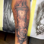 Tetování přesýpací hodiny a růže na předloktí