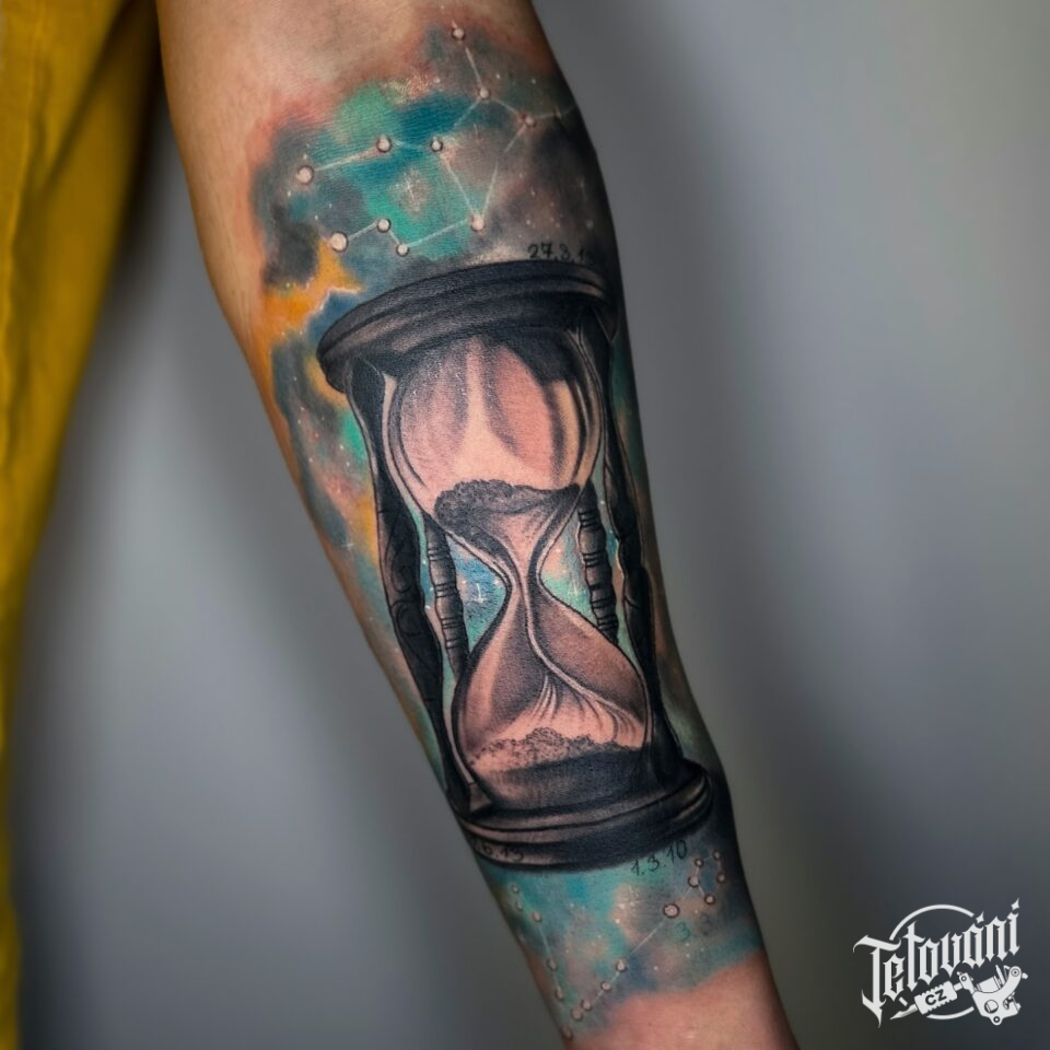 Tetování přesýpací hodiny na předloktí