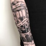 Tetování přesýpací hodiny, nápisy, citáty na předloktí