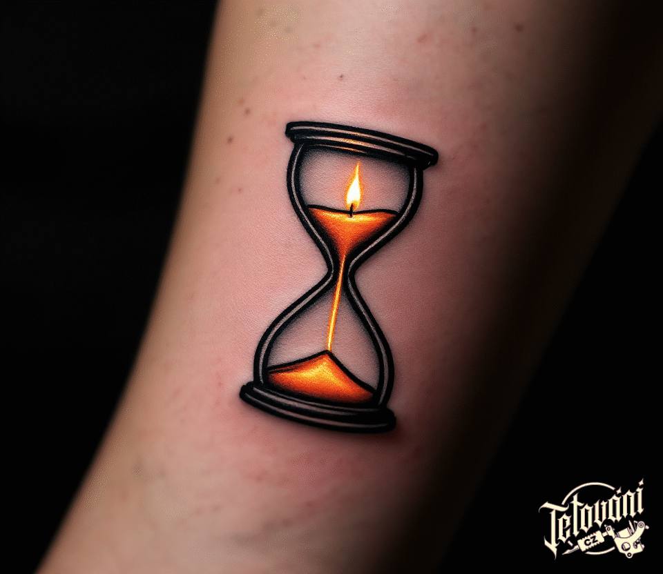 Tetování přesýpací hodiny života se svíčkou na předloktí