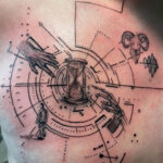 Tetování přesýpací hodiny, znamení života, ruce, znamení zvěrokruhu beran na hrudník