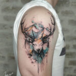 Tetování příroda a zvíře, hory a hlava jelena na rameni