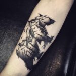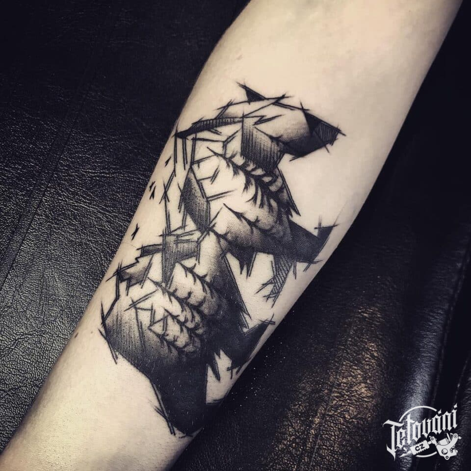 Tetování příroda a zvíře, hory a medvěd na předloktí