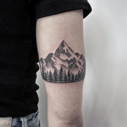 Tetování příroda a zvíře, hory a pták na rameni