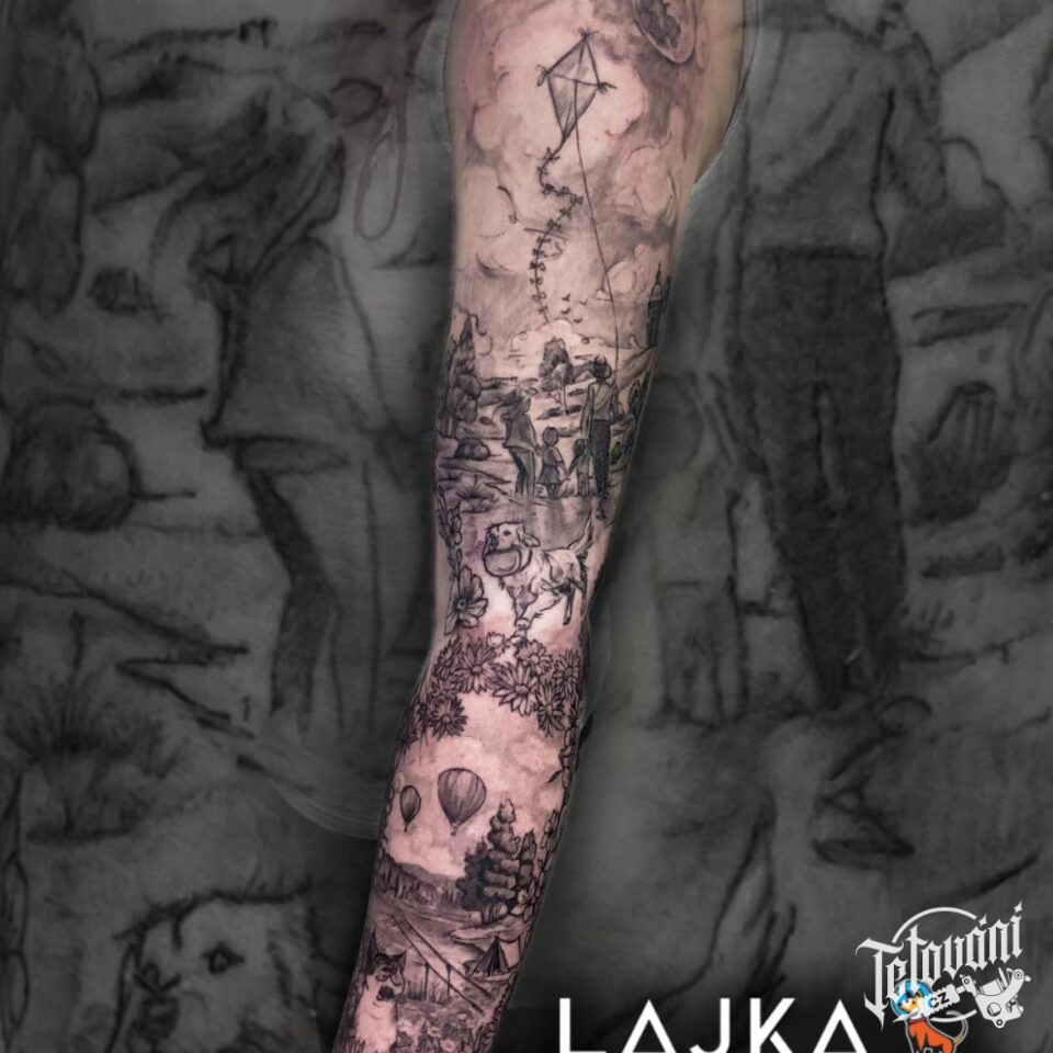 Tetování příroda, cestování a květiny na rukávu