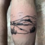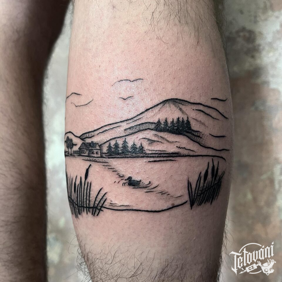 Tetování příroda, hory a les na lýtko