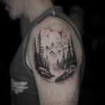 Tetování příroda, hory a les na rameno