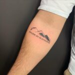 Tetování příroda, hory a nápis na předloktí