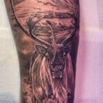 Tetování příroda hory a zvíře jelen na předloktí