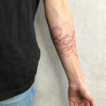 Tetování příroda, hory, čáry na předloktí
