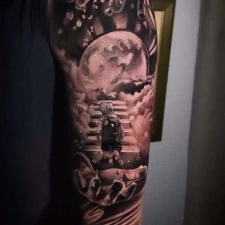 Tetování příroda, hory, cesta, les, rodina, zvíře, sovarukáv