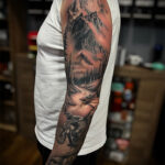 Tetování příroda, hory, cesta, motorkář, rukáv