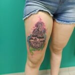 Tetování příroda, hory, cesta na stehně