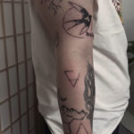 Tetování příroda, hory, les a tvary a zvíře, pták, vlaštovka na ruce