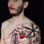 Tetování příroda, hory, les na hrudi
