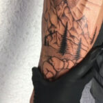 Tetování příroda, hory, les, Slunce na předloktí