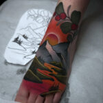 Tetování příroda, hory na nárt