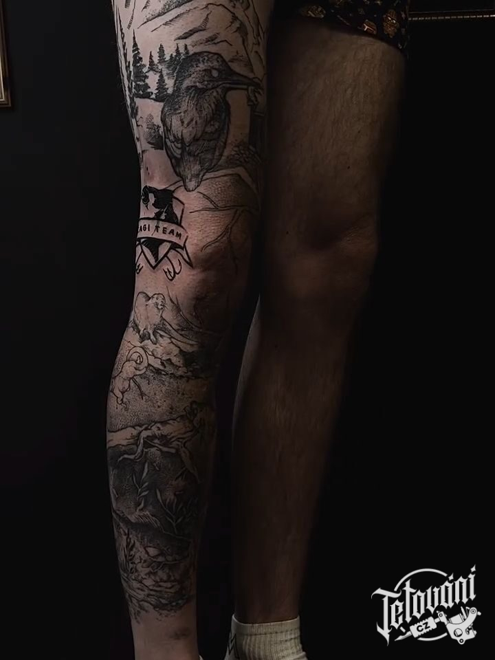 Tetování příroda hory na nohu