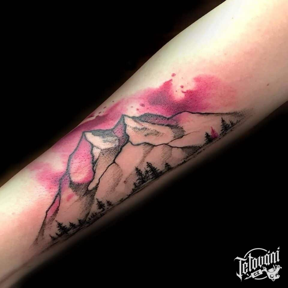 Tetování příroda, hory na předloktí