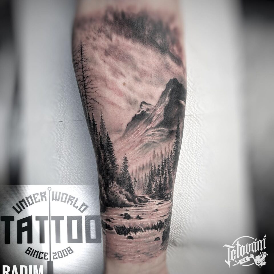 Tetování příroda, hory na předloktí