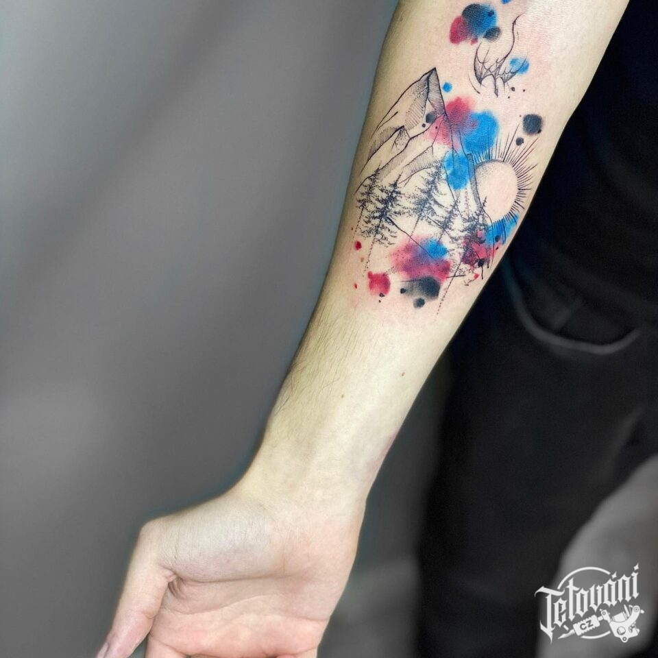 Tetování příroda, hory na předloktí