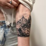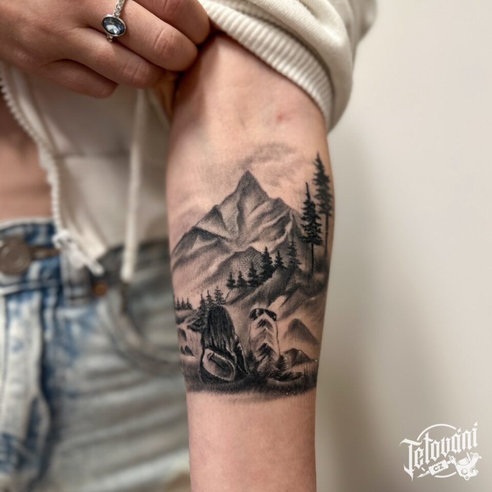 Tetování příroda, hory na předloktí