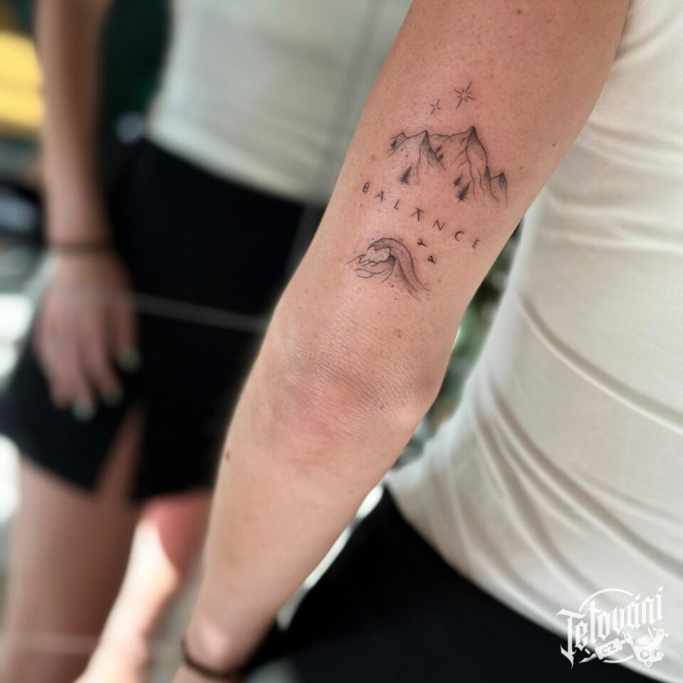 Tetování příroda, hory, na rameno