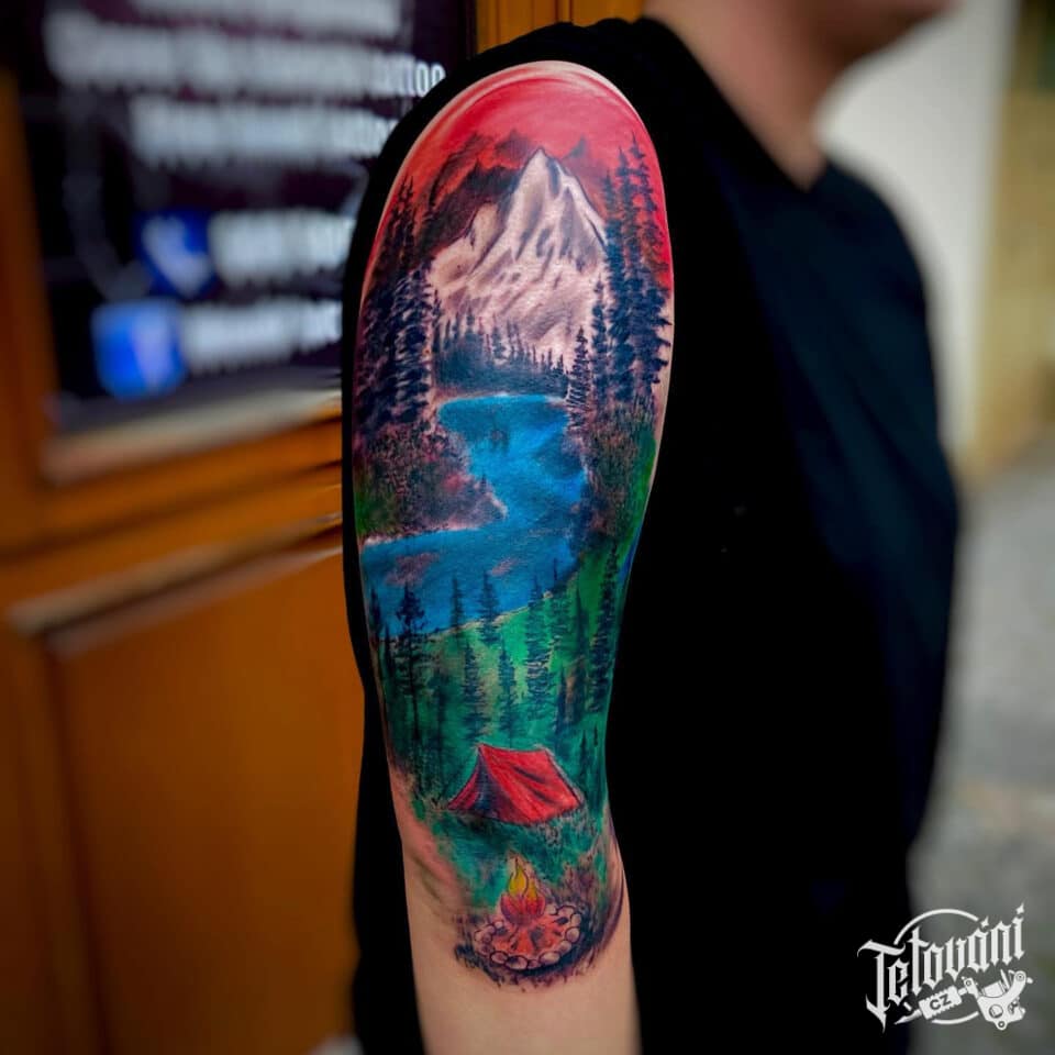Tetování příroda, hory na rameno