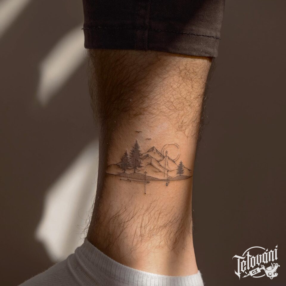 Tetování příroda, hory nad kotníkem