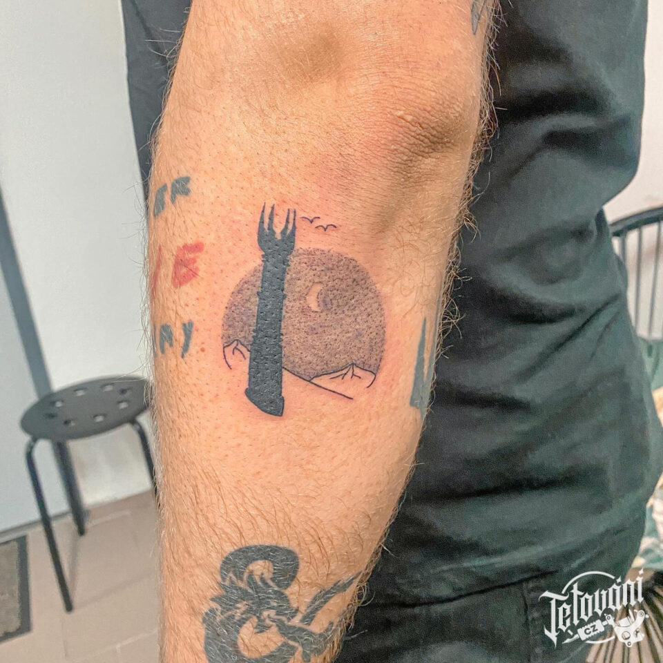 Tetování příroda, hory, předmět z filmů a pohádek na loket
