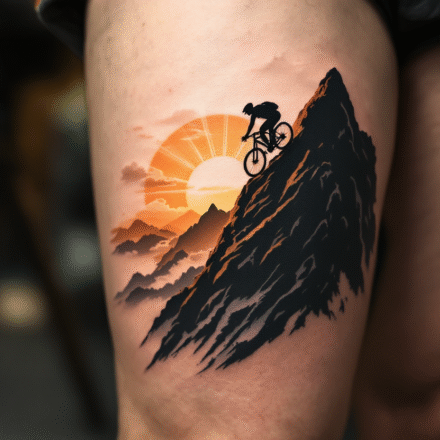 Tetování příroda, hory, slunce na rameno