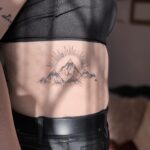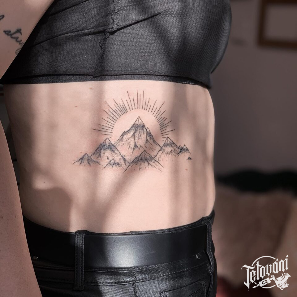 Tetování příroda hory, slunce na žebra