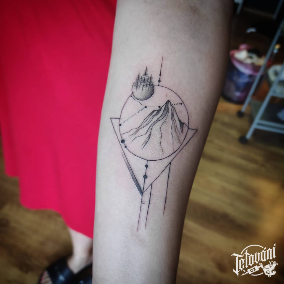 Tetování příroda, hory, souhvězdí raka na předloktí