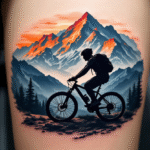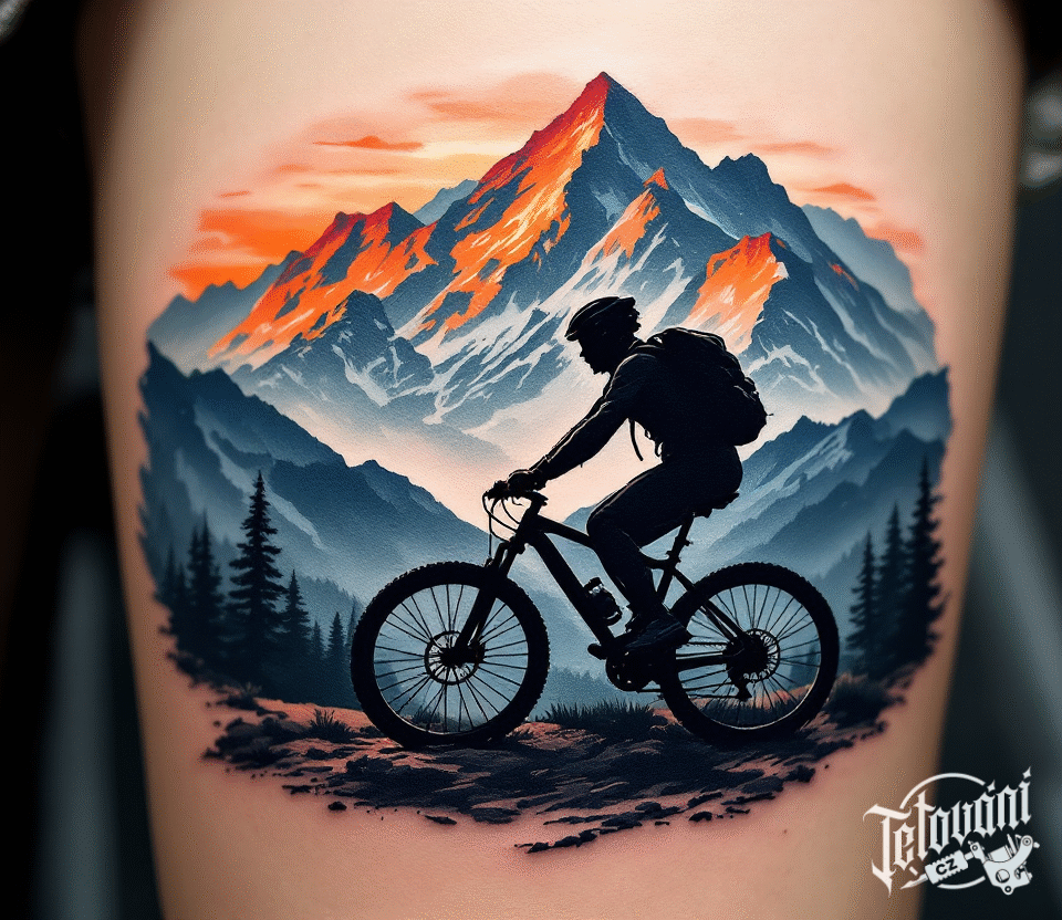 Tetování příroda, hory, sport, cyklo, dopravní prostředek kolo na rameno