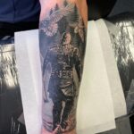 Tetování příroda hory, viking na předloktí