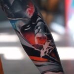 Tetování přiroda, hory, znaky a symboly, barevné čáry předloktí