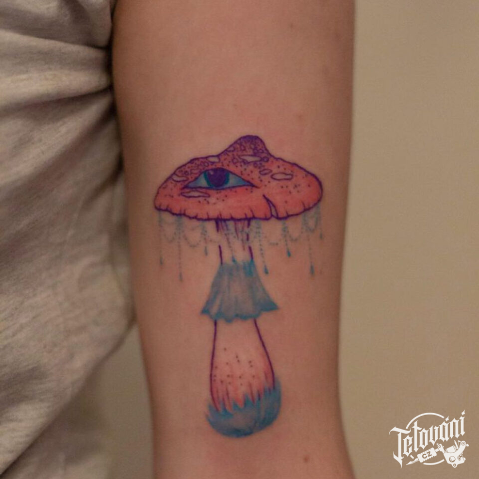 Tetování příroda, houba s okem na ruce