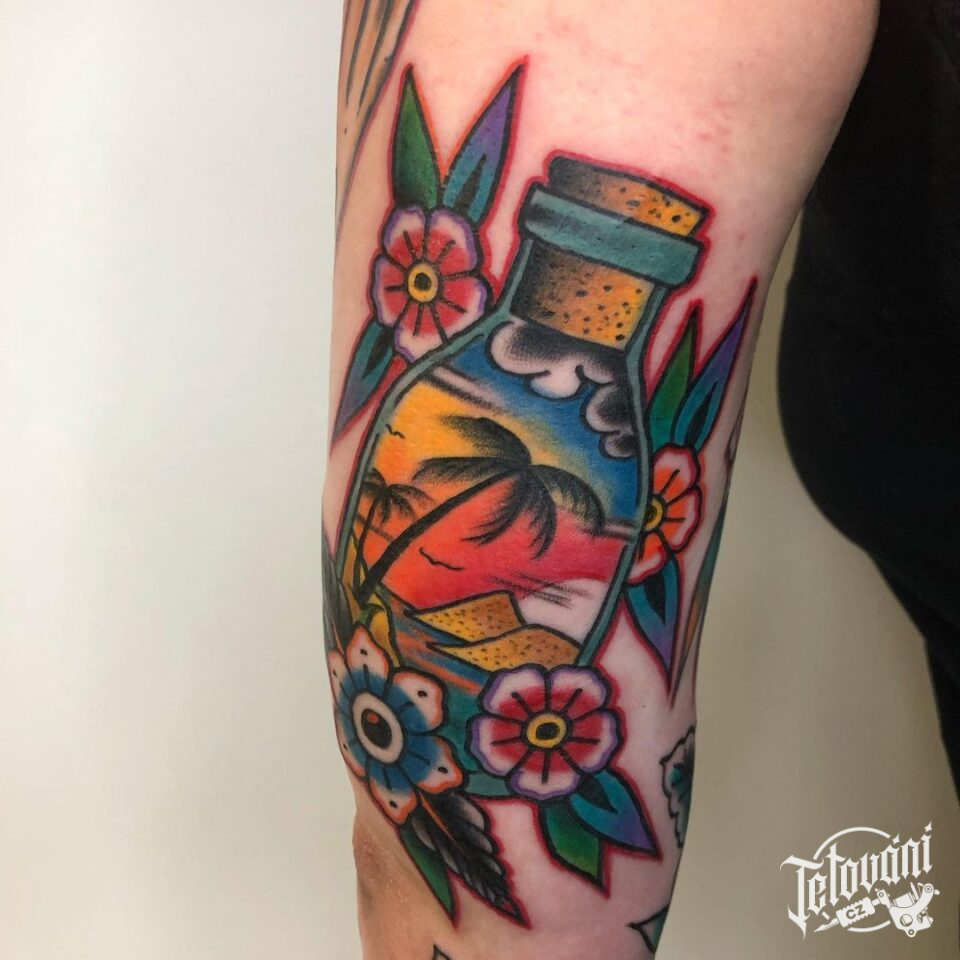 Tetování příroda, květiny na paži